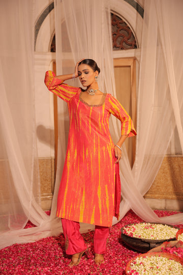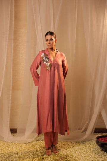 This beautiful salmon pink kurta is made from organic shimmer fabric, ensuring a luxurious no-crush...