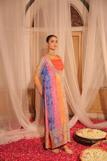 This vibrant multi-color soft tissue suit is a beautiful blend of elegance and artistry. Adorned...