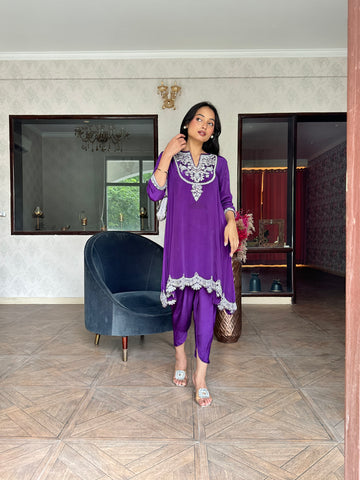 Description: This stunning pink lilac silk full suit features a beautifully embroidered kurta with intricate...