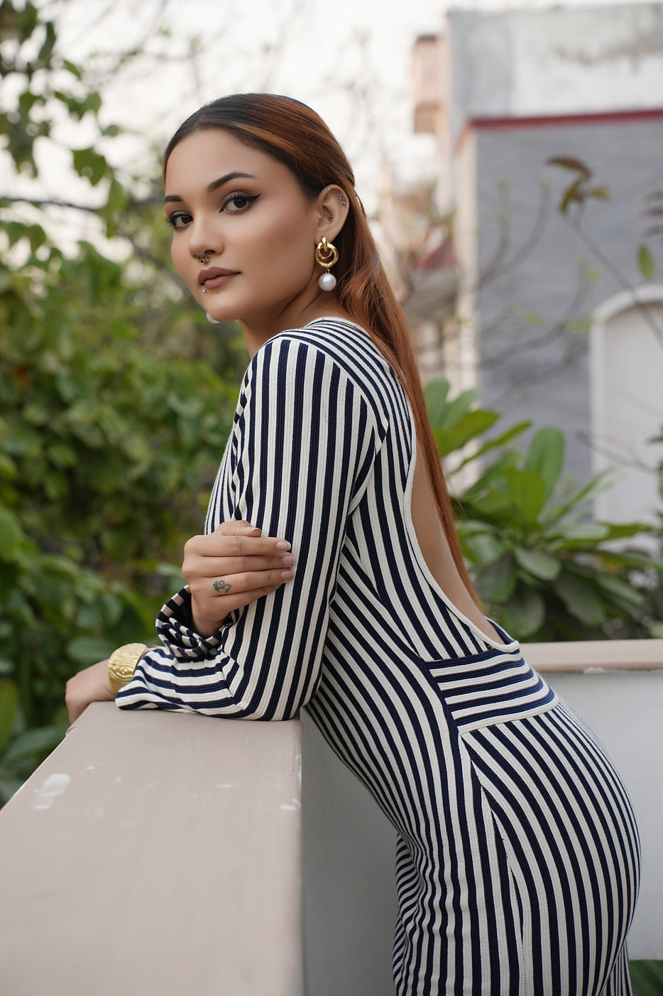 The stunning combination of blue and white creates a striking visual contrast, making this dress a standout choice for any party or special occasion. The vibrant blue hue adds a pop of color, while the crisp white accents lend a touch of freshness and refinement.